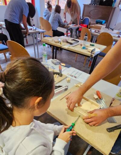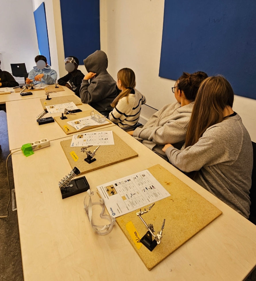 In drei abwechslungsreichen Kursen erkundeten die Schülerinnen und Schüler die Bereiche Handwerk, Elektronik und soziale Berufe. Es wurde gehämmert, gelötet, geschraubt, geklebt, geholfen. Und natürlich viel gelacht!