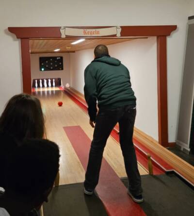 Doch die Woche bestand nicht nur aus Arbeit. Am Nachmittag war Teamgeist auf eine andere Art gefragt: Ausflug in den Supermarkt, beim abendlichen Kegeln, beim Steine flitschen an der Isar oder beim entspannten Chillen auf den Zimmern.